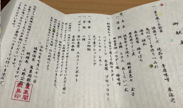 佐賀牛すき焼きをメインとした会席料理をいただきました。