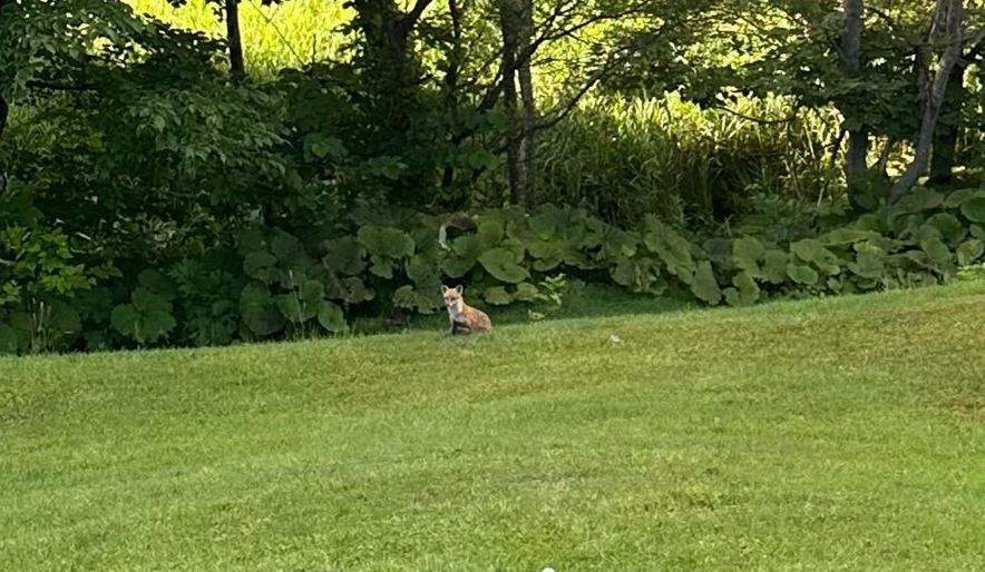 コース内にキツネがいました。このような野生動物を間近で見られるのも北海道らしいですね。