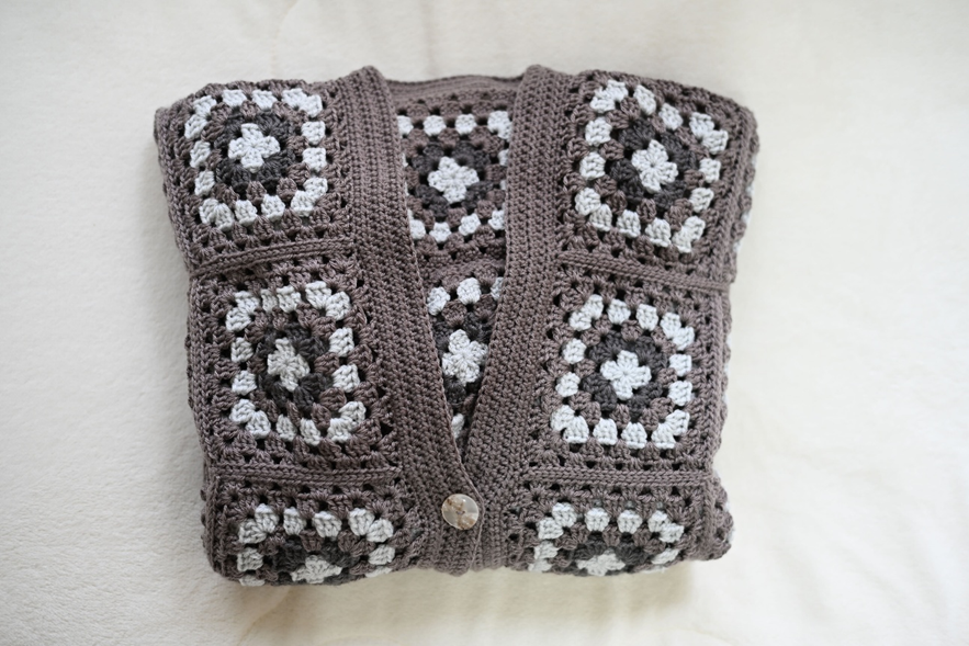 少しオーバーサイズのゆったりとした、カーディガンとなりました。