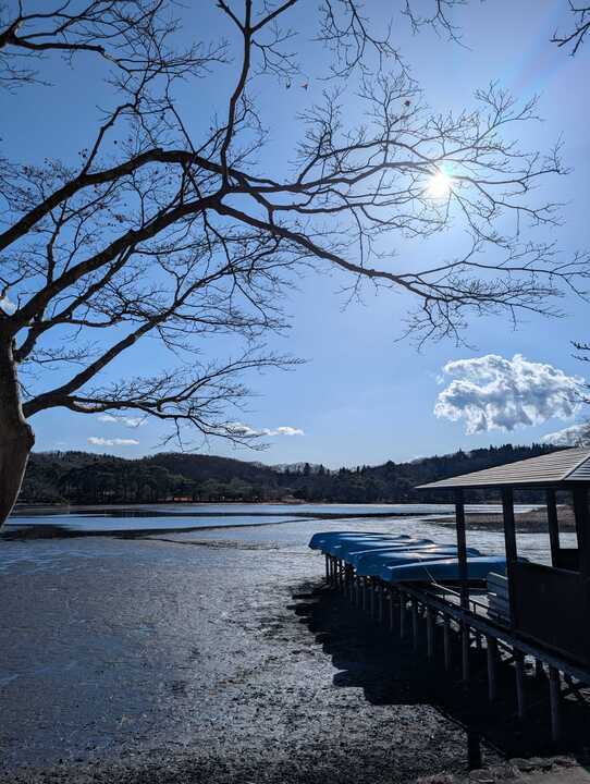 南湖神社を参拝して御朱印をいただき、南湖もちょっと散策。水不足で干上がってる!と思いきや、毎年恒例の池干しというものらしいです。水質管理の為に冬の時期に行われるそう。この湖には何も隠せませんね。